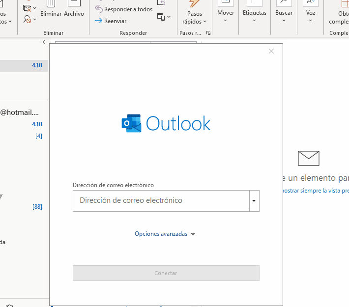 Si es la primera vez que va configurar Outlook y núnca lo abrió y es la primera vez - ir al paso Dos.