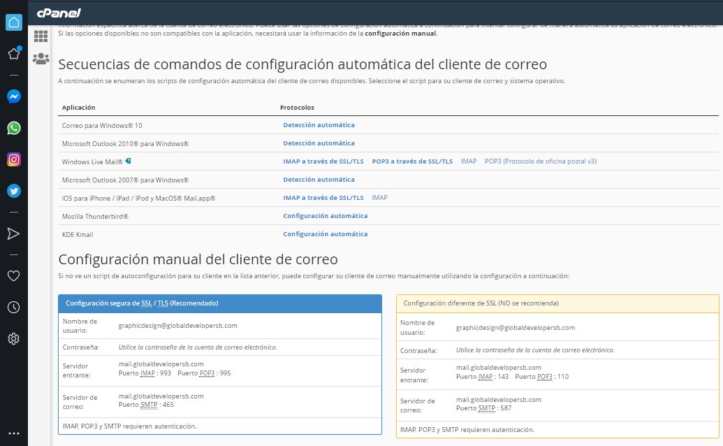 Esta opción es muy importa para las configuraciones de los Puertos Mail - Pop, normalmente las configuraciónes son iguales para todos los correos electrónico.